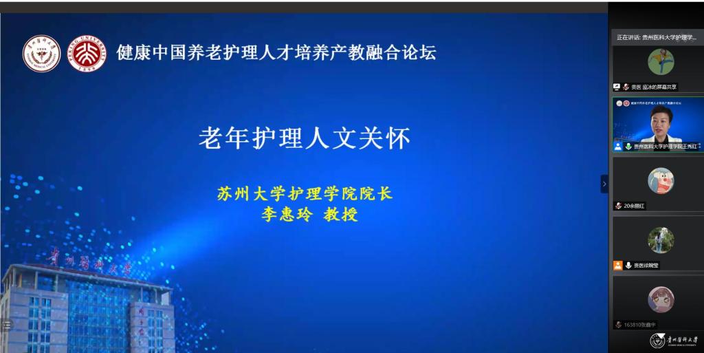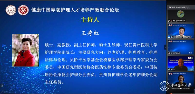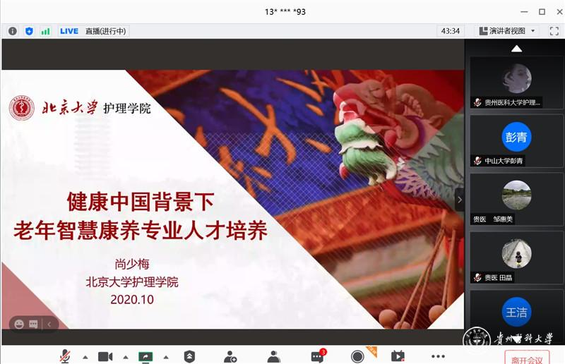 中国已经进入人口老龄化快速发展阶段,老年护理需求与老年护理人才供给严重失衡,如何才能更好培养符合社会需求的老年护理人才,满足养老市场需要?10月24日,77779193永利官网联合北京大学护理学院在线举办了健康中国养老护理人才培养产教融合论坛,全国各地近400名护理、养老、康旅等方面从业者通过会议及同步直播参会。论坛由77779193永利官网护理学院党委书记杨英、中山大学旅游学院教授彭青、北京大学护理学院副教授金晓燕、77779193永利官网护理学院副院长王秀红分别主持。