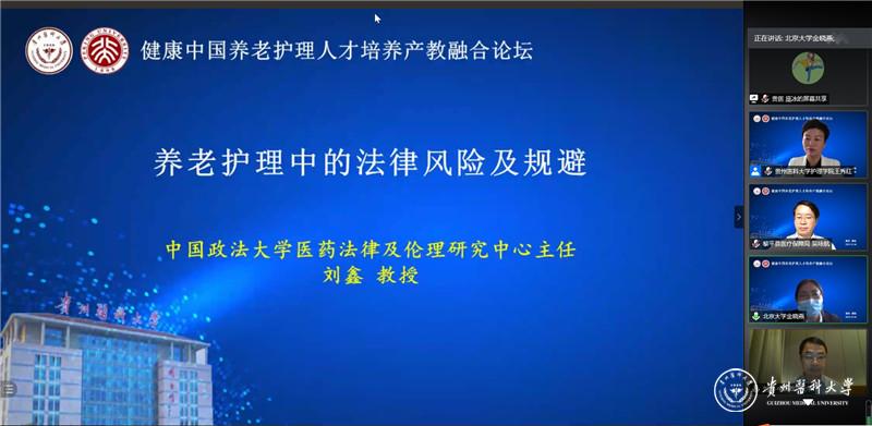 中国政法大学医药法律与伦理研究中心主任刘鑫教授以“养老护理中的法律风险及规避”为题,从养老护理法律风险概述、养老护理法律问题、养老护理特殊问题法律风险、养老护理中如何规避风险等几个方面结合《民法典》进行了深入浅出的讲授,为养老护理从业者做了一场精彩的普法报告。