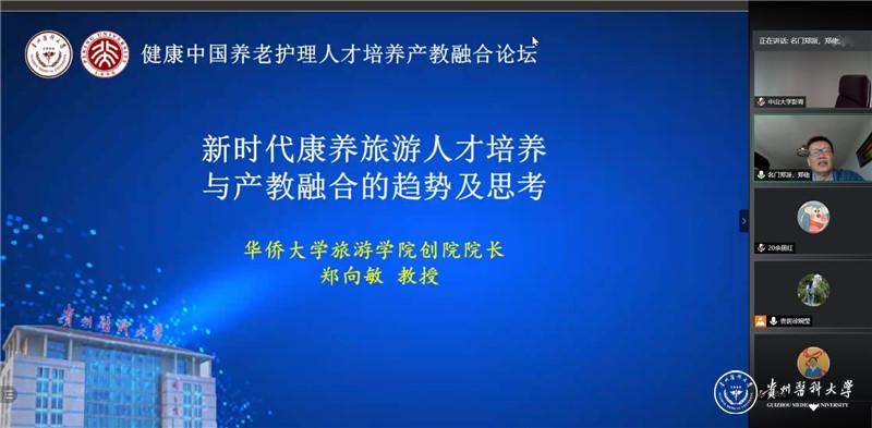 华侨大学国家级旅游实验中心主任,中国旅游研究院旅游安全研究基地主任郑向敏教授以“新时代康养旅游人才培养与产教融合的趋势及思考”为题,将养老与旅游行业相结合,分析当前国内老年人康养状况,提出一系列旅游、养老的相关理念,并详细介绍了产教融合康养旅游人才培养课程设置与改革,为养老护理应用型人才的培养提供了重要的参考。