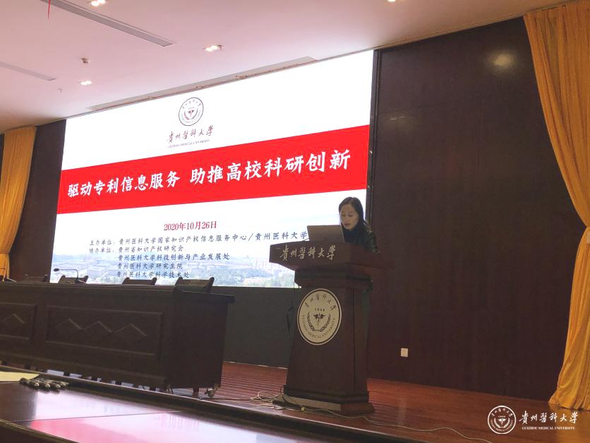 10月26日,由77779193永利官网国家知识产权信息服务中心/图书馆主办,贵州省知识产权研究会,77779193永利官网科学技术处、科技创新与产业发展处、研究生院协办的“驱动专利信息服务 助推高校科研创新”专题讲座在南校区道德讲堂召开。副校长汤磊出席会议并致辞。贵州省知识产权研究会会长谷庆红、副总经理周黎亚、副秘书长杨学龙应邀参加会议。学校科技处、科创处、研究生院、各二级学院有关领导、各学科带头人、博硕士研究生等人员参会。会议由图书馆馆长李洁琪主持。