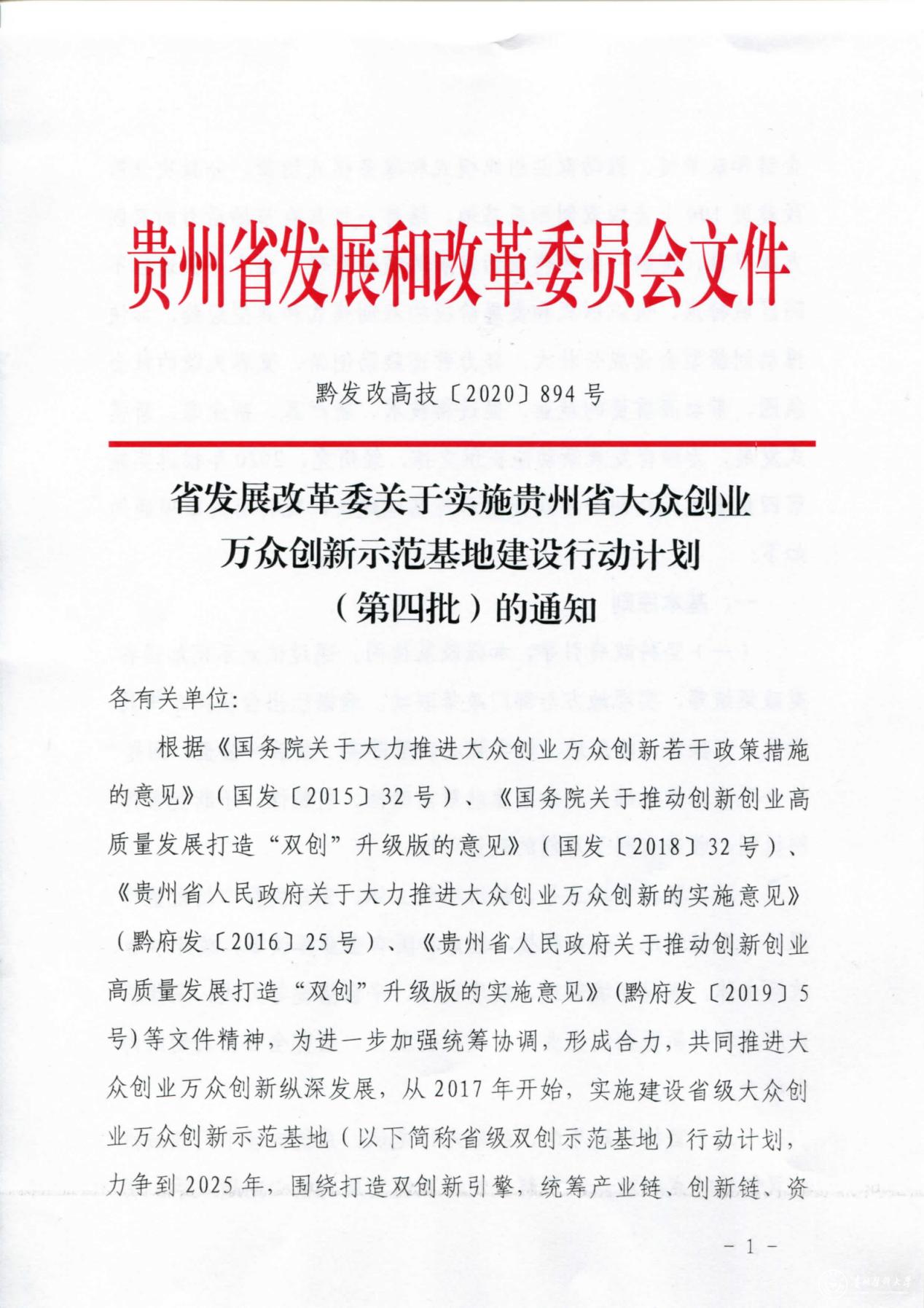 近日,贵州省发展和改革委员会公布了14家“省级双创示范基地”名单,永利官网成功获批第四批“省级双创示范基地”。