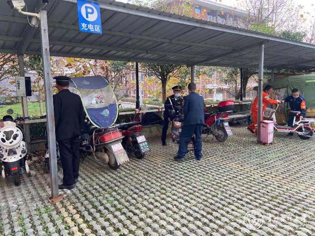 针对发现的安全隐患,检查小组在对违规骑行人员进行制止、宣传教育和制度说明的同时,共将清理的102辆“僵尸车”集中停放于空旷区域进行管理,并配备灭火器,由专人看护,切实做好冬季校园交通、消防安全管理工作。