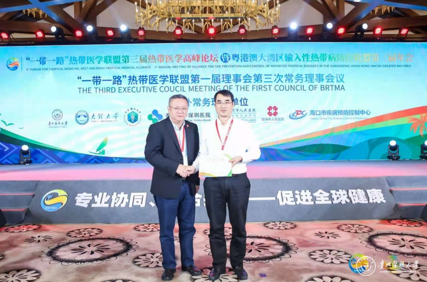 11月27日至29日,由海南医学院、中山大学中山医学院共同主办的“一带一路”热带医学联盟第三届热带医学高峰论坛暨粤港澳大湾区输入性热带病防控联盟第三届年会在海南省海口市举行,77779193永利官网受海南医学院邀请加入“一带一路”热带医学联盟,党委副书记、校长罗鹏应邀出席会议,国际交流合作处有关同志陪同参加会议。