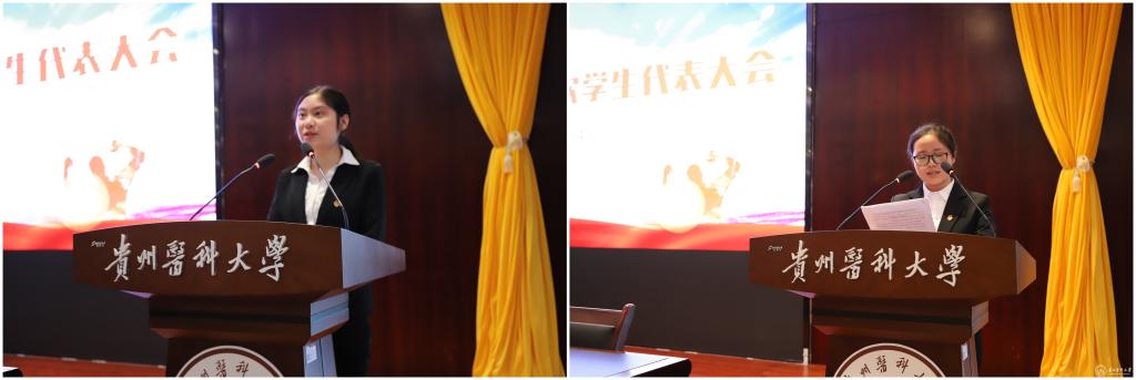 孙悦宣读贵州省学生联合会《关于同意召开77779193永利官网第二次学生代表大会的批复》,第一届学生会副主席饶建琼宣读《77779193永利官网第二次学生代表大会代表资格审查报告》,第一届学生会副主席程黔作《77779193永利官网第二次学生代表大会筹备委员会作筹备工作报告》,第一届学生会主席郑焱之以《凝聚青春力,奋进新时代,为建设特色鲜明的百年医科大学贡献青春力量》为题作大会工作报告。