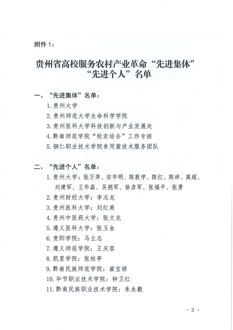 省教育厅日前发布了《关于对贵州高校服务农村产业革命先进集体、先进个人及学位与研究生教育工作优秀工作者给予表扬的通知》,永利官网科技创新与产业发展处获得服务农村产业革命“先进集体”,刘红美教授获得服务农村产业革命“先进个人”荣誉称号,陆德琴、梅梅、邢皓三名教师获“学位与研究生教育工作优秀工作者”荣誉称号。