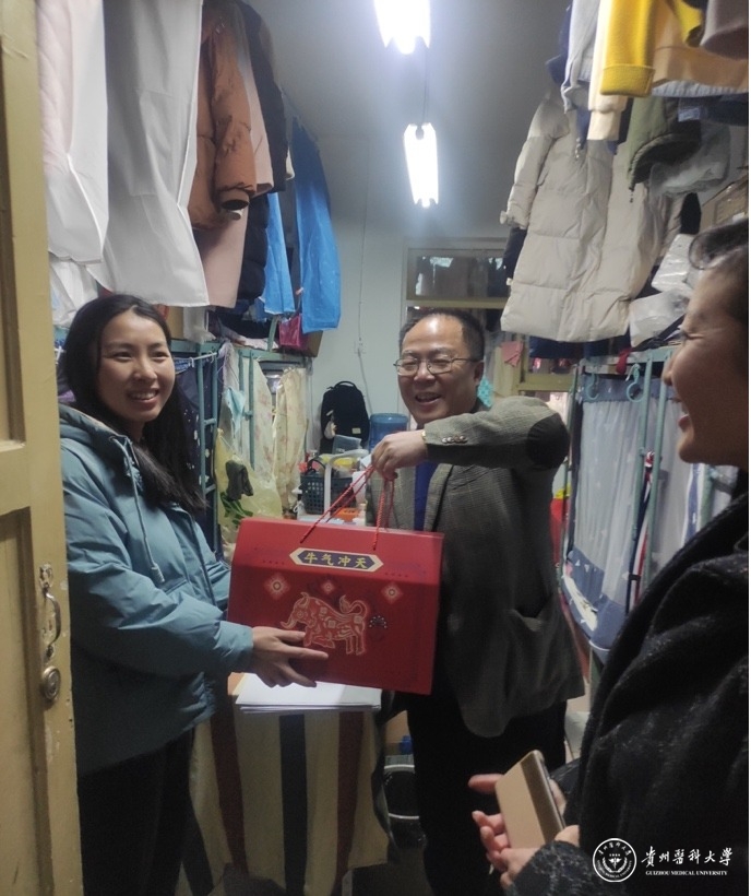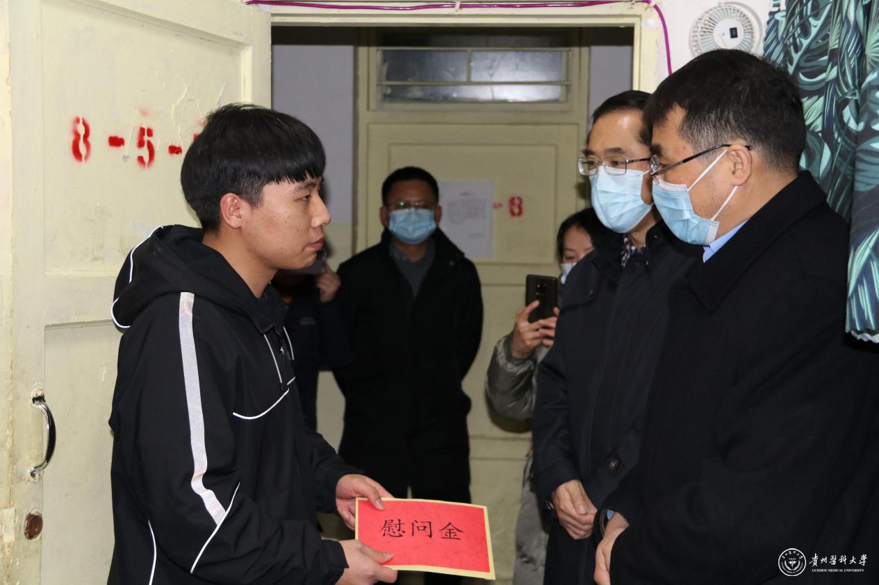 2月9日下午,校党委副书记、校长罗鹏,党委副书记战勇,副校长曾柱等校领导在有关部门负责人陪同下深入学生公寓,看望慰问响应“原地过年”号召的学生,送上慰问金和新年礼包,代表学校向他们致以诚挚的问候和新春的祝福。