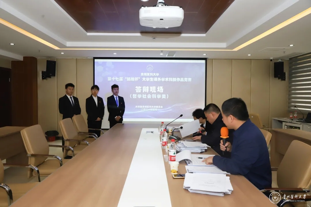 贵州省发展和改革委员会社发处副处长张祥辉,贵州科学院创新发展处处长邹天才,贵州省社会科学院大数据政策法律创新研究中心副主任、区域经济研究所研究员罗以洪,贵州中医药大学科研处处长蒲翔,贵州中医药大学傅建博士,贵阳市第四人民医院中西医结合骨伤科主任医师戴科晶,77779193永利官网贵州省分子生物重点实验室主任齐晓岚,77779193永利官网教务处副处长修江帆,77779193永利官网医学人文学院副院长严万森担任本次决赛答辩的现场评审专家。