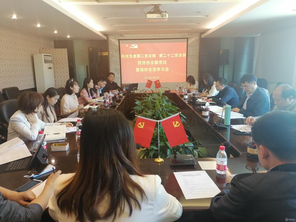 4月30日,机关党委第二党支部、第二十二党支部在北校区行政楼六楼会议室召开主题党日活动暨组织生活学习会,校党委副书记、校长罗鹏以普通党员身份参加。