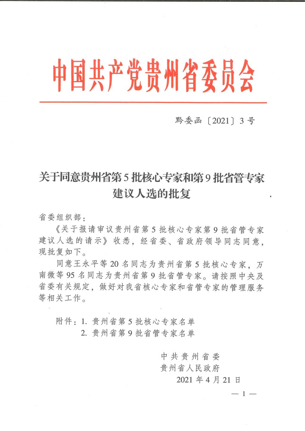 近日,中共贵州省委、贵州省人民政府批准通过贵州省第5批核心专家和第9批省管专家名单,永利官网汤磊、沈祥春被评为“贵州省第5批核心专家”,李海洋、曾柱、邓进、舒莉萍、何彬、黄勇、李艳梅被评为“贵州省第9批省管专家”。截至目前,永利官网共有贵州省核心专家8人、省管专家20人。