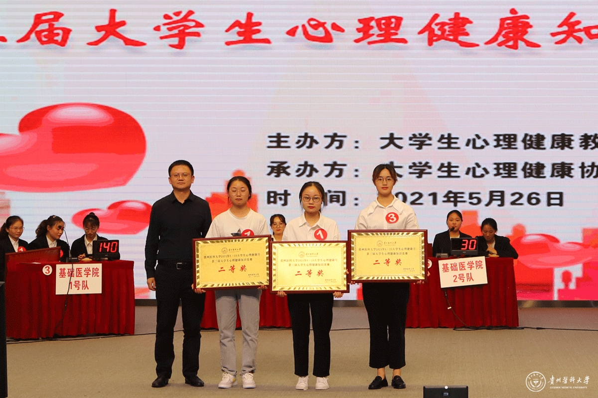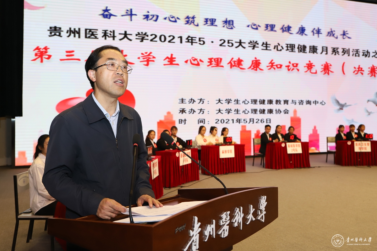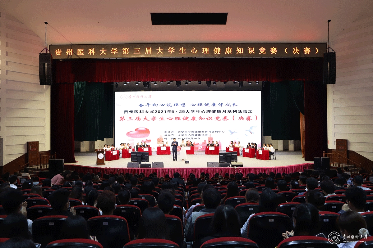 5月26日,永利官网“奋斗初心筑理想,心理健康伴成长”第三届大学生心理健康知识竞赛决赛在花溪校区礼堂举行。校党委副书记战勇,校党委委员、宣传部部长、统战部部长陈颖,党委学生工作部(学生处、武装部)部长王韬,学生资助管理中心副主任贲琛,校团委副书记陈思颖,大学生心理健康教育与咨询中心副主任彭丹,各学院党委副书记、心理辅导员、心理委员和学生代表观看比赛。