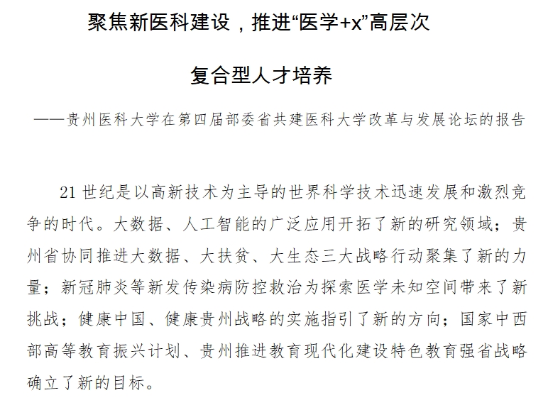 永利官网以《聚焦新医科建设,推进“医学+x”高层次复合型人才培养》为题,与其他医学院校进行了书面交流。