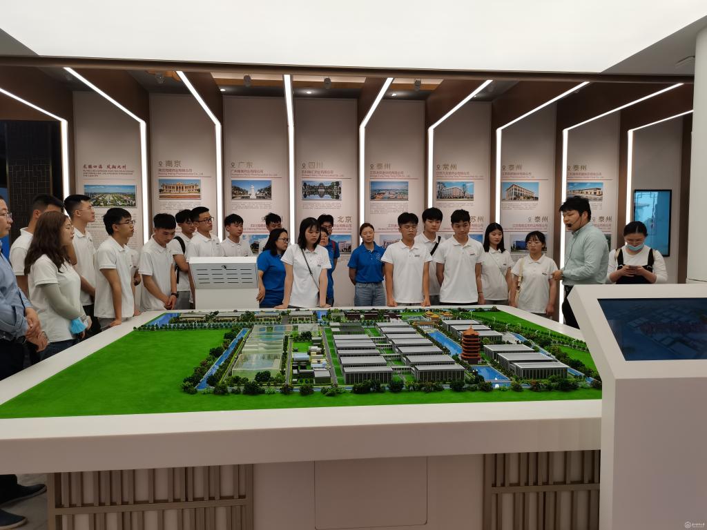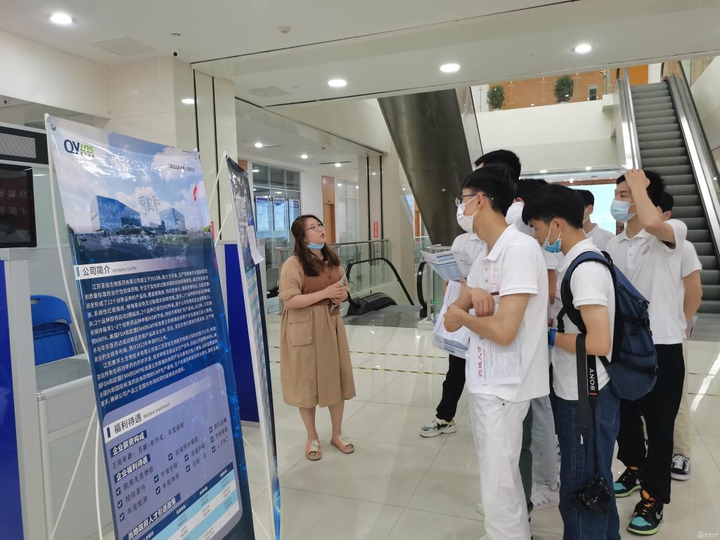 师生代表观摩了园区规划馆,见识了宏伟壮观的园区规划馆及展示中心,通过讲解员的现场讲解,毕业生们对医药园区的概况有了初步了解。在人社局工作人员的引导下,毕业生还参观了医药园区一些代表性企业:泰州迈博太科药业有限公司、疫苗工程中心、江苏中慧元通生物科技有限公司、扬子江药业集团,每到一家企业,企业负责人、人力资源部负责人及生产管理负责人都热情接待,详细向学生们介绍企业发展历程、未来目标、软硬件设施及对人才的需求情况,带领学生深入生产一线车间,讲述生产流程及产品销售情况,实地了解医药高新区人才生活馆、人才公寓等生活环境以及相应的配套政策。毕业生们就符合自己专业的企业岗位与用人单位进行了交谈,并投递简历。