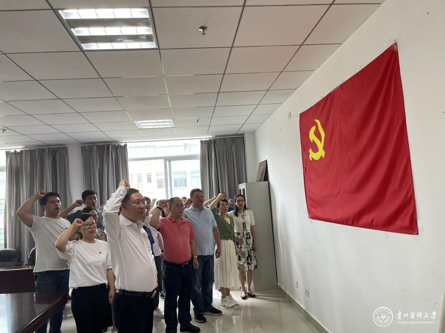 “我志愿加入中国共产党,拥护党的纲领,遵守党的章程……”面对鲜红的党旗,在支部书记冯广卫带领下,全体党员庄严地高举右拳,重温入党誓词。