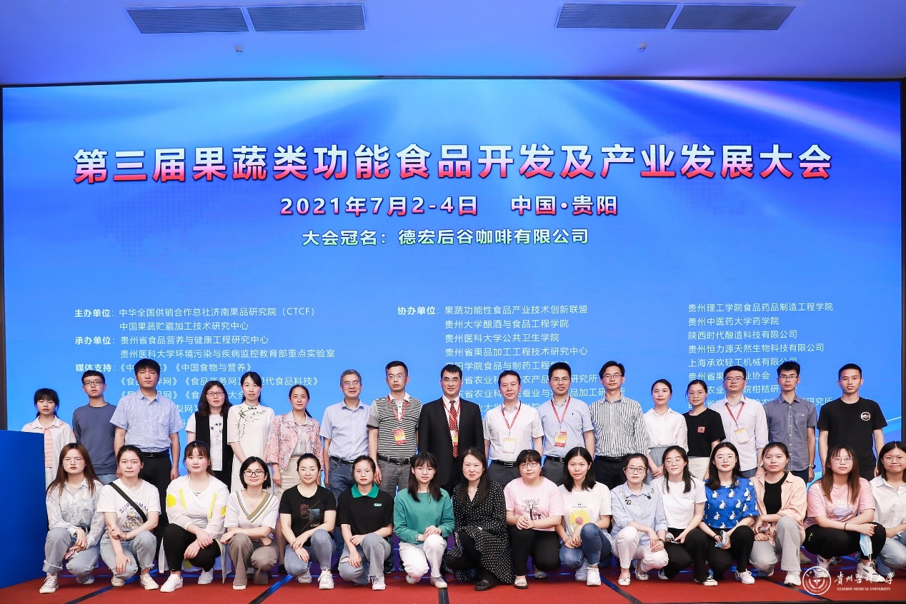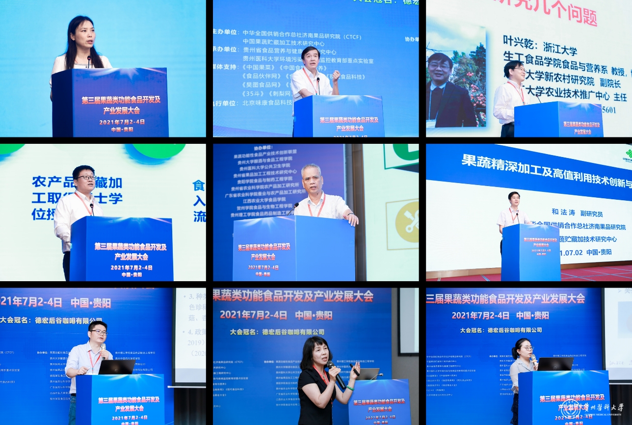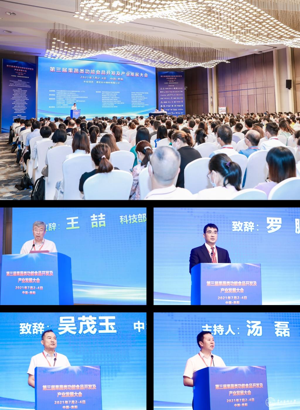 7月2日至4日,由中华全国供销合作社济南果品研究院、中国果蔬贮藏加工技术研究中心主办,77779193永利官网贵州省食品营养与健康工程研究中心和环境污染与疾病监控教育部重点实验室承办的第三届果蔬类功能食品开发及产业发展大会在贵阳召开。本次会议共设5个分会场,240余所高校、企业及科研院所的约530余位专家学者参加。科技部农村科技司原巡视员、中国食品科学技术学会传统酿造食品分会理事长王喆,永利官网党委副书记、校长罗鹏教授,中华全国供销合作总社济南果品研究院院长吴茂玉受邀参加开幕式并致欢迎辞。会议开幕式由副校长汤磊教授主持。