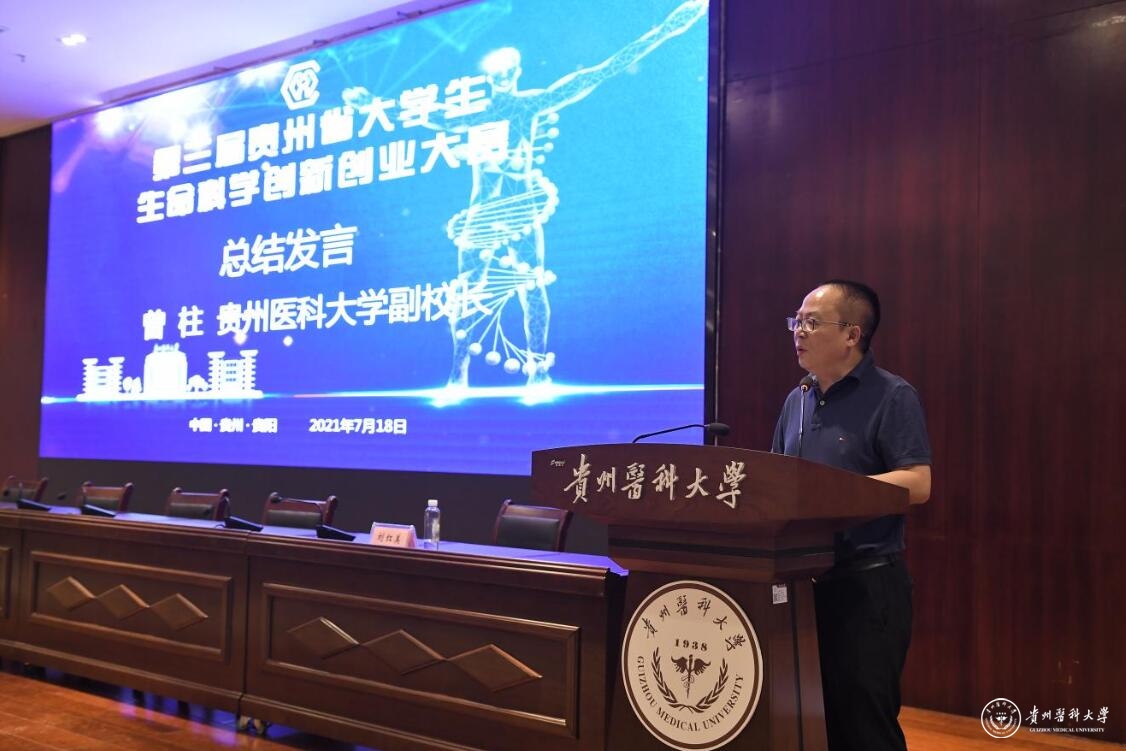 曾柱指出,创新创业类大赛是深化创新创业教育改革的重要载体,旨在推动高校创新创业实践教育的改革与创新,是实现科研成果转化及产学研紧密结合的关键纽带,对进一步推进高校大学生创新创业教育,提升人才培养质量具有重要作用。曾柱强调,当代大学生要以习近平新时代中国特色社会主义思想为指导,按照习近平总书记在庆祝中国共产党成立100周年大会上对新时代中国青年提出的要求——“以实现中华民族伟大复兴为己任,增强做中国人的志气、骨气、底气,不负时代,不负韶华,不负党和人民的殷切期望”,为贵州省经济社会高质量发展贡献一份力量。