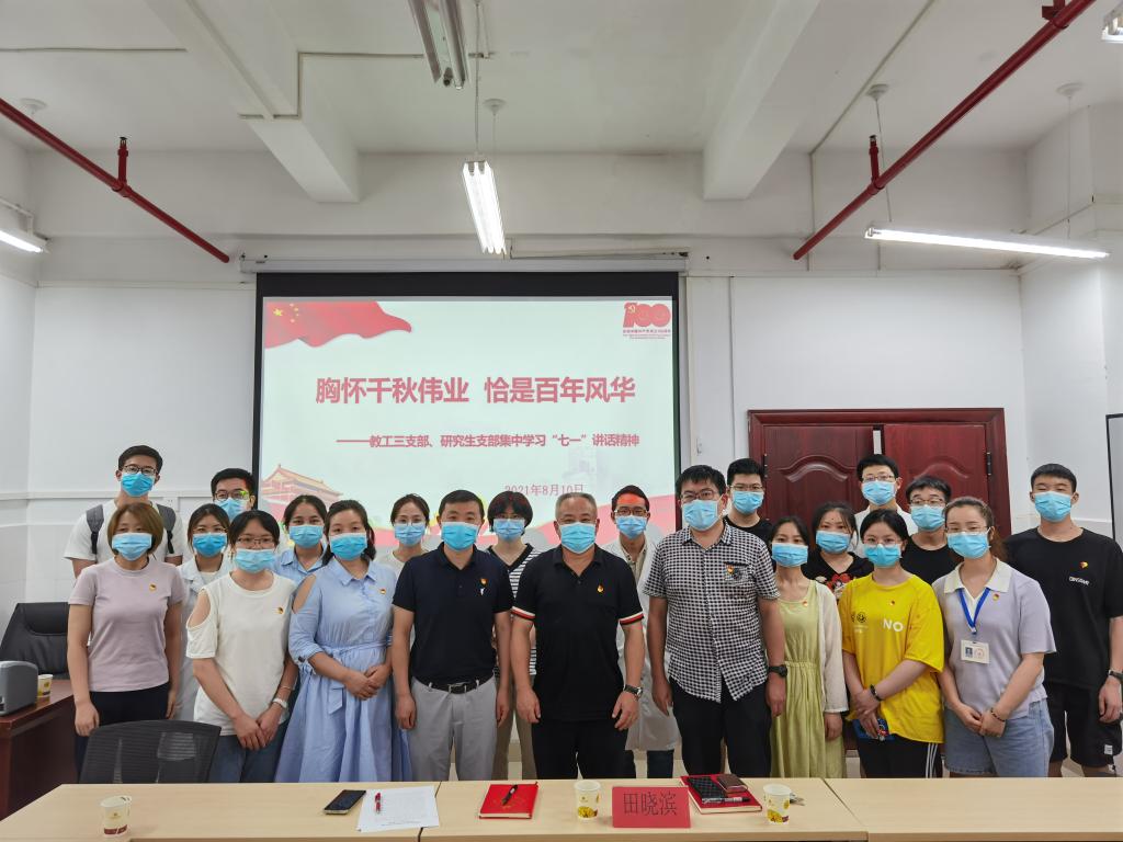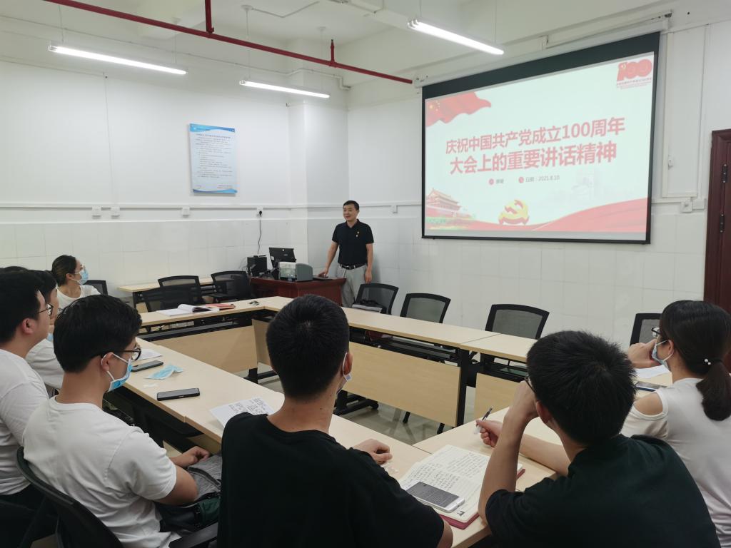 会上,廖健以四个伟大成就、伟大建党精神、九个必须为切入点,讲“庆祝中国共产党成立100周年大会上的重要讲话精神”专题党课,希望学院研究生党员以实现中华民族伟大复兴为己任,增强中国人的志气、骨气、底气,不负时代,不负韶华,不负党和人民的殷切期望。随后,党员同志们与会交流发言。