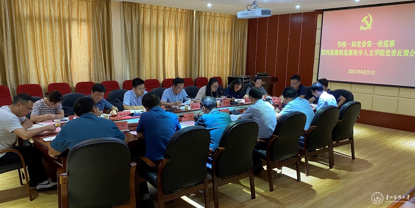 8月31日,学校第一届党委第一轮巡察第四巡察组在医学人文学院召开巡察反馈会。校纪委书记、省监委驻校监察专员、校党委巡察工作领导小组成员陈代勇出席,第四巡察组组长张雪晴、校党委巡察办主任、党委办公室(保密办)副主任陆法钢、党委组织部副部长、党校常务副校长李红,学校纪委、省监委驻学校监察专员办第二纪检监察室副主任杜胜鹏,学校党委第四巡察组副组长邓欣、副组长何雨羲及第四巡察组有关成员;医学人文学院党委班子、副科以上干部、教师代表参加。医学人文学院党委书记江宣成主持。