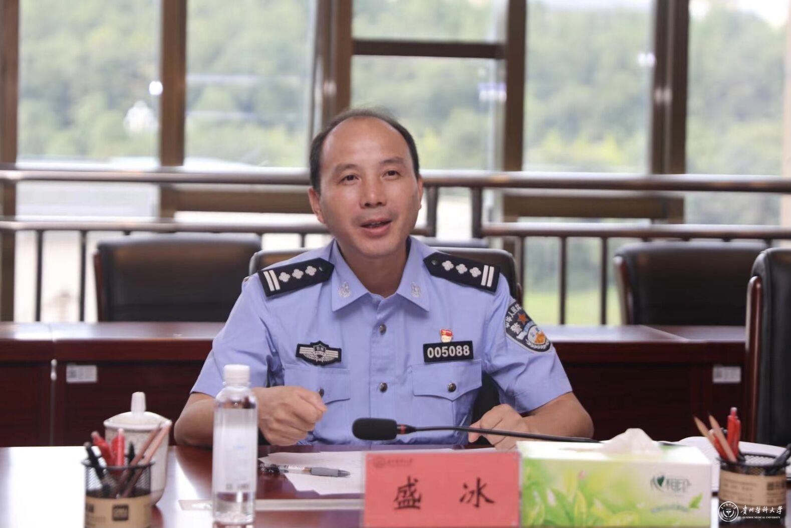 汤磊代表学校致欢迎辞,对盛冰一行表示欢迎,感谢贵安新区公安局对永利官网的关心和支持,并简要介绍永利官网防范电信诈骗宣传工作的基本情况及永利官网在此方面取得的成绩和存在的不足。