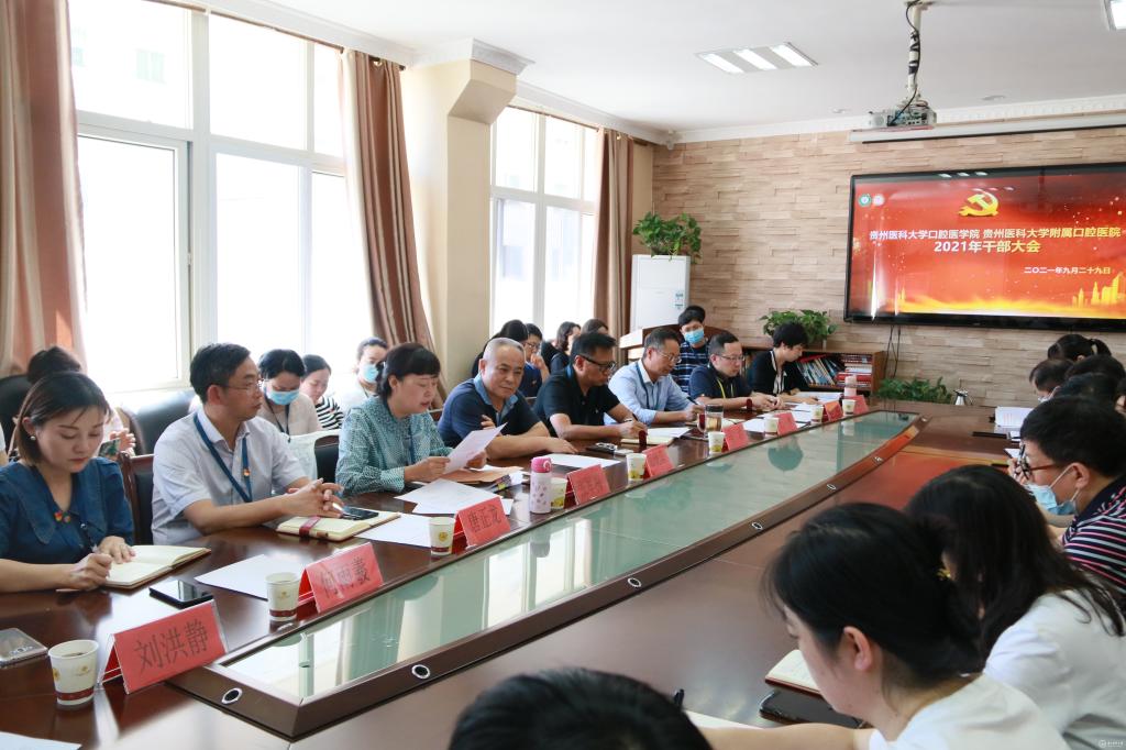 9月29日,口腔医学院(附属口腔医院)在行政楼五楼会议室召开干部大会,副校长田晓滨出席并讲话,院党政领导班子成员,全院副科级以上干部,各临床医技科室、职能部门、教研室、实验室主要负责同志,全体党支部书记及支委、分工会主席,科室护士长及护理组长参加。院党委书记张军梅主持。