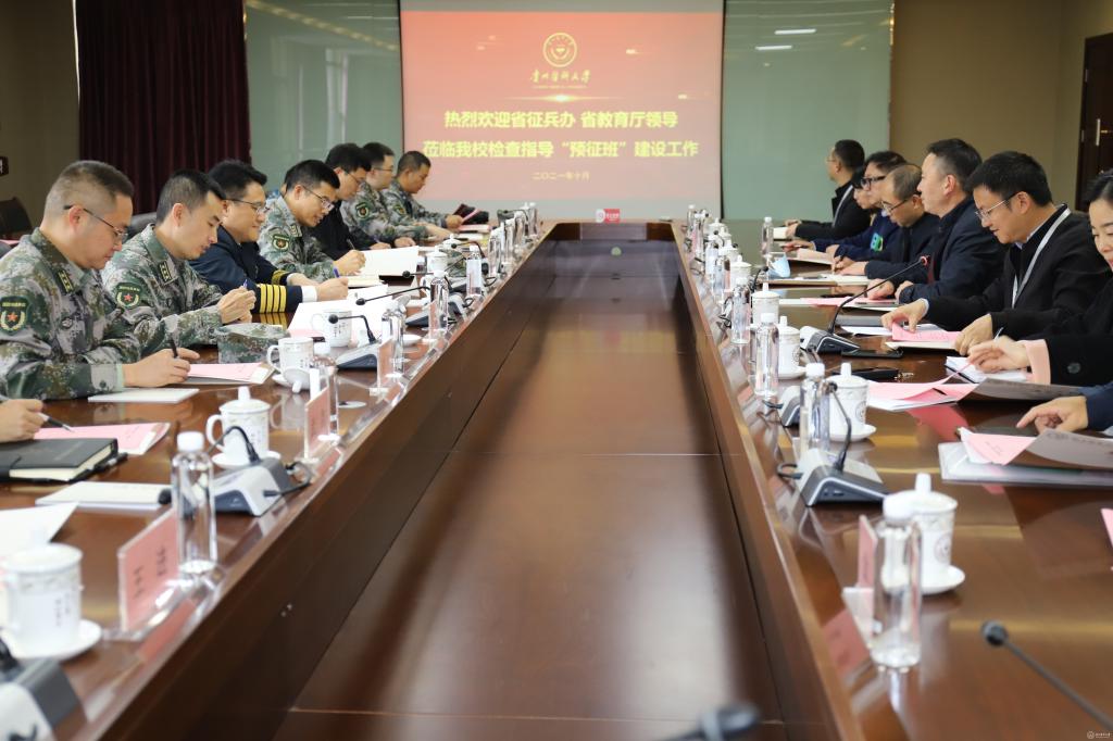10月29日,由省军区动员局局长隋圣陶、贵阳警备区副司令员郑风潮、省教育厅就业办副主任周明及省、市、区征兵办相关人员组成的调研组10余人到永利官网调研高校“预征班”建设工作。副校长汤磊出席调研会,党委学生工作部(武装部)、教务处、招生就业处、团委、大健康学院、大学城医院主要负责同志参加调研。