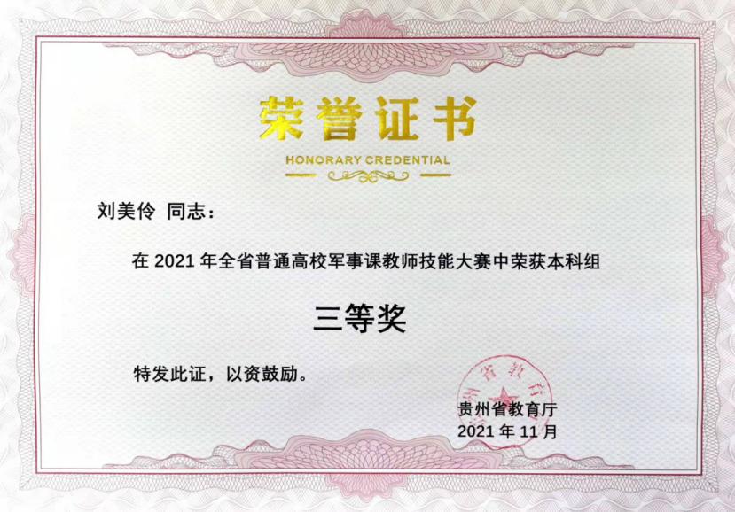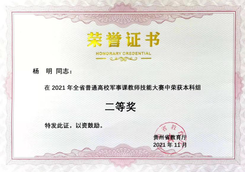 近日,在省教育厅主办的2021年全省普通高校军事课教师技能大赛中,经过初赛、视频复赛、现场决赛三个阶段的比拼,永利官网杨明老师讲授的《毛泽东军事思想之四渡赤水出奇兵》获二等奖,刘美伶老师讲授的《新时代国防的挑战与突围》获三等奖。