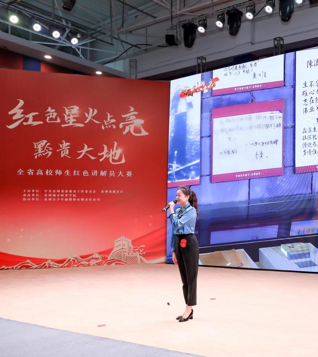 11月25日,由中共贵州省委教育工作委员会、贵州省教育厅主办,贵州城市职业学院承办的“红色星火点亮黔贵大地”全省高校师生红色讲解员大赛决赛在贵阳举行。本次大赛全省共有76所高校参加。28名选手进入决赛,其中高职院校学生组与教师组各8人,本科院校学生组与教师组各6人,大赛4个组别共评出金奖4名、银奖4名、铜奖6名、指导教师奖7名、优秀奖14名、最佳组织奖4名。永利官网马克思主义学院的参赛教师肖蓉参加本科院校教师组的角逐,喜获铜奖。