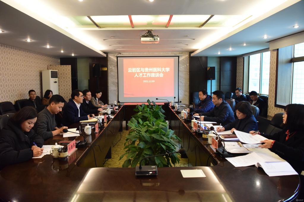 12月9日,贵阳市云岩区区委书记朱刚到校洽谈毕业生人才留筑事宜。会议在北校区行政楼6楼会议室举行,校党委副书记、校长罗鹏,副书记汤磊出席,校长办公室、研究生工作部、招生就业处等相关部门负责人参加。