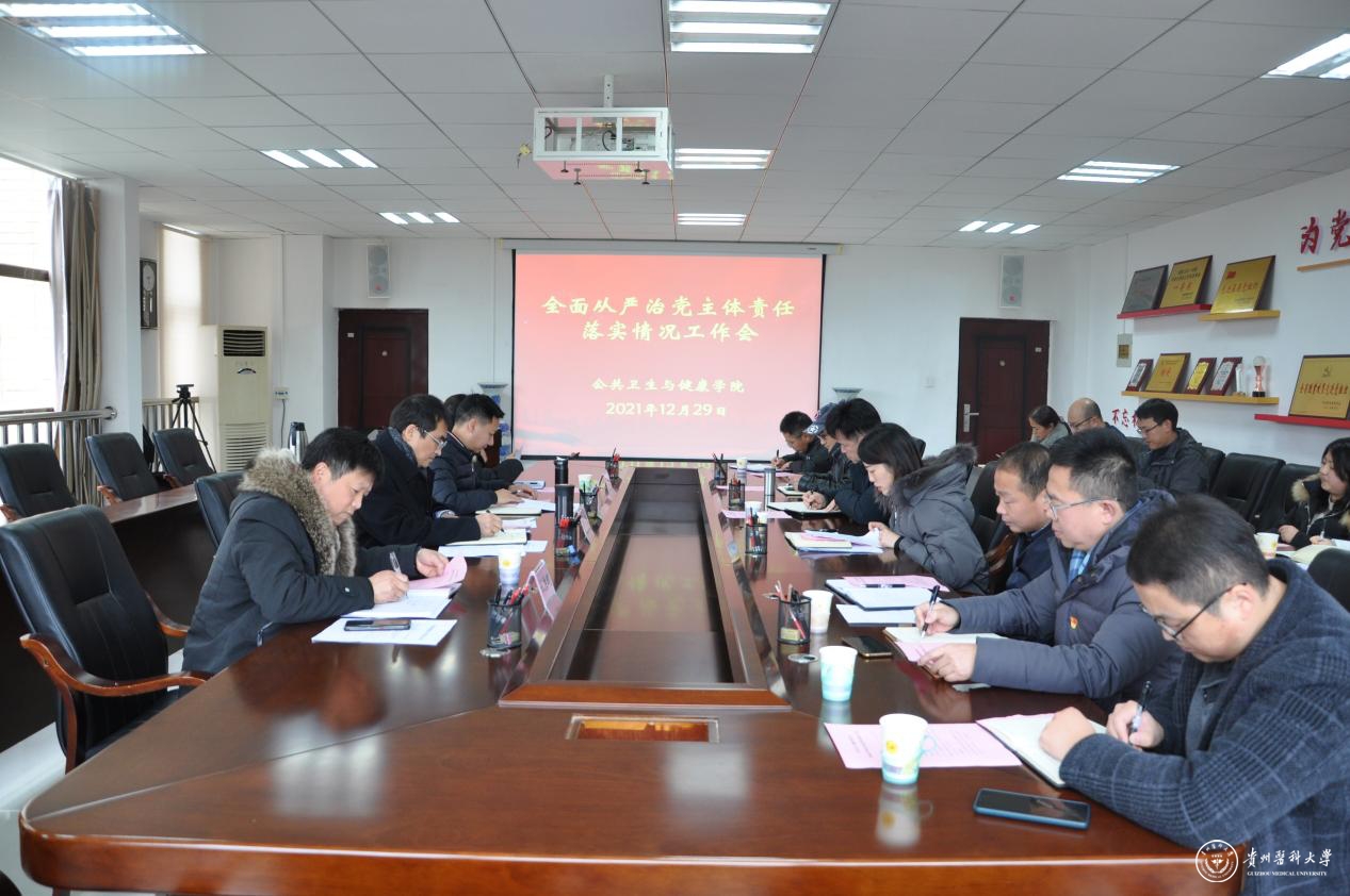 12月29日,学校党委全面从严治党主体责任落实情况第二督查组到公共卫生与健康学院开展2021年度全面从严治党主体责任落实情况督导检查。校党委副书记、校长罗鹏,人事处处长、校办副主任冯飞,省纪委、省监委派驻永利官网纪检监察组第二纪检监察室主任杜胜鹏,药学院党委副书记包欢欢,到公共卫生与健康学院实地督导检查。学院党委班子成员、环境污染与疾病监控教育部重点实验室、卫生发展研究院、毒性检测中心相关负责人,以及各支部书记参加。会议由学院党委书记郑维薇主持。