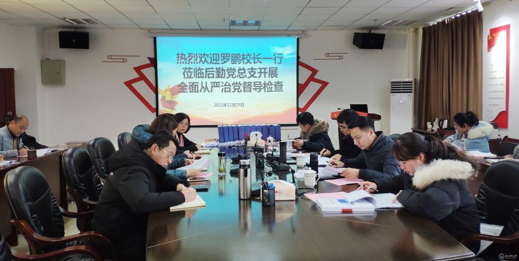 12月29日,校党委副书记、校长罗鹏带队到后勤管理处党总支开展2021年度全面从严治党主体责任落实情况督导检查。后勤管理处党总支班子成员、副科级以上干部参加会议。会议由党总支书记张玲玲主持。