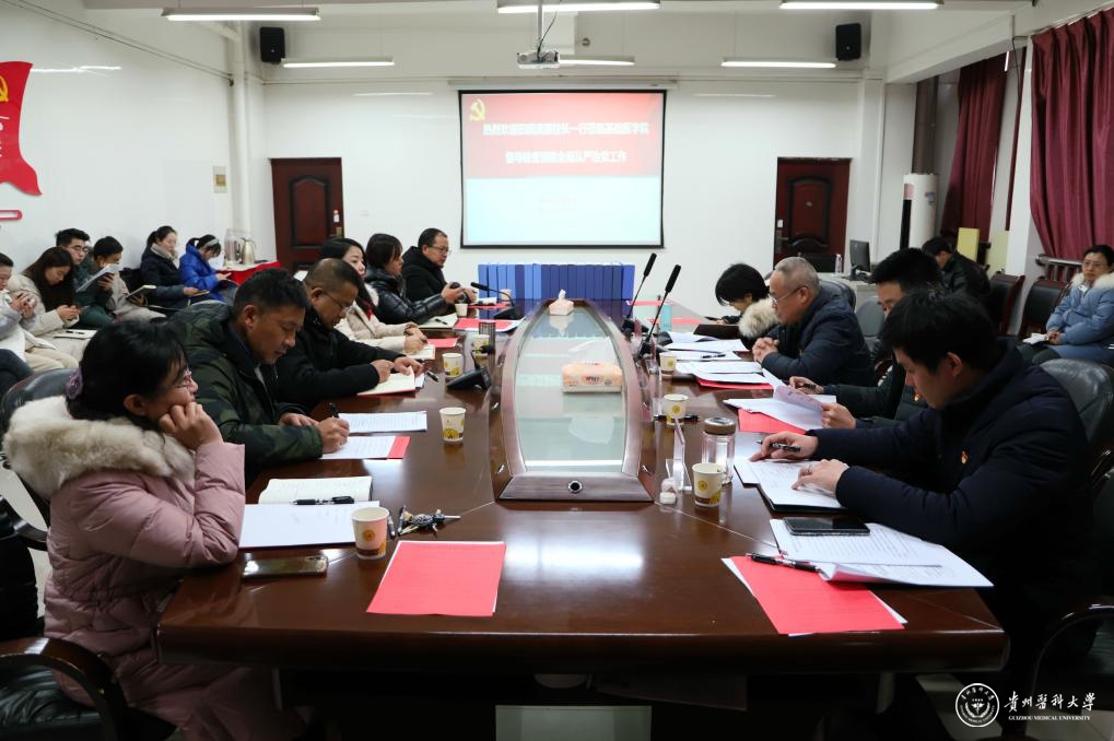 12月27日,学校党委全面从严治党主体责任落实情况第五督查组到基础医学院开展2021年度全面从严治党主体责任落实情况督导检查。副校长田晓滨,人事处副处长朱俊伟,临床医学院副书记王筑山,省纪委、省监委派驻永利官网纪检监察组综合室综合科科长雷豪到基础医学院党委实地督导检查。基础医学院党委班子成员,学院各科室、教研室负责人、支部书记、全体辅导员参加。会议由学院党委副书记张贤主持。
