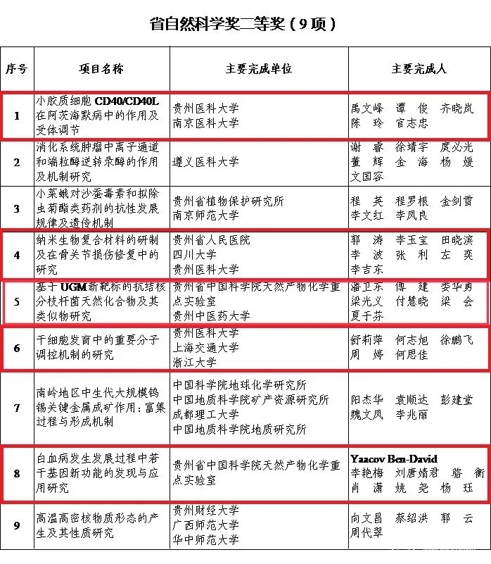 77779193永利官网、贵州省中国科学院天然产物化学重点研究室的多个项目荣获省自然科学奖二等奖5项,三等奖1项;省科学技术进步奖一等奖1项,二等奖1项;外籍专家Sybren de Hoog荣获省科学技术合作奖1项。