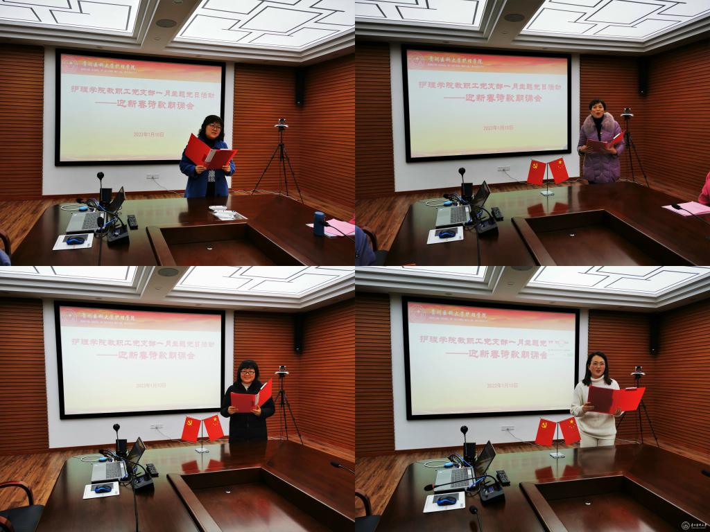 支部党员朗诵《我爱您中国》《卜算子•咏梅》《春江花月夜》《相信未来》等10余首诗歌喜迎新年。活动中,支部为入党的教师党员李红、王丽过政治生日,李海洋送上了政治生日贺卡。