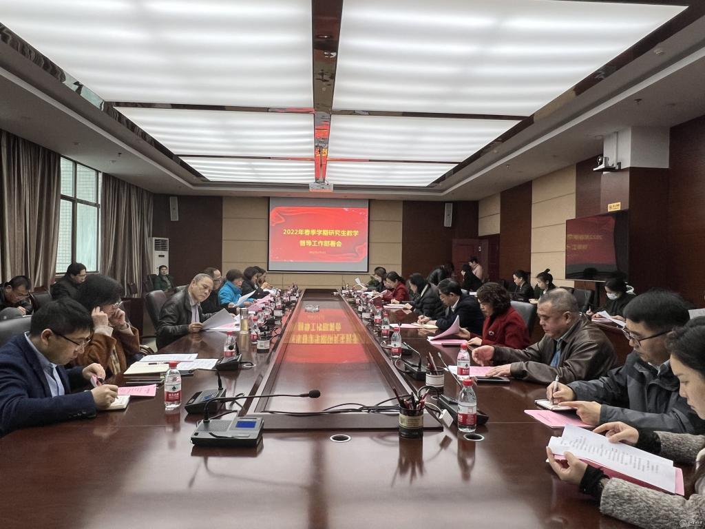 研究生院院长陆德琴介绍了2022年春季学期研究生课程教学、中期考核、预答辩、答辩和教学中期检查等工作安排,以及学校印发的关于研究生培养环节的相关文件制度。