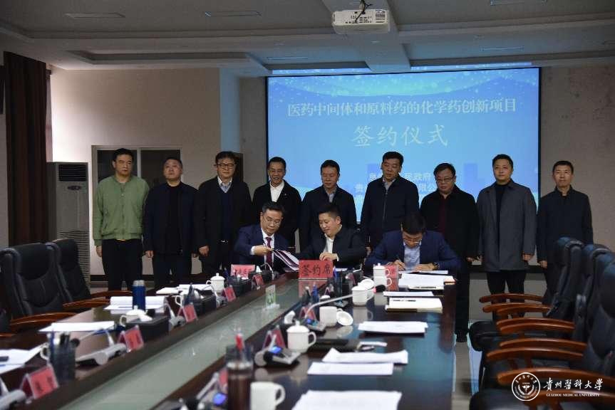 3月4日,永利官网贵州省化学合成药物研发利用工程技术研究中心以知识产权作价入股的化学药生产基地项目建设取得了重大进展,贵州中森医药公司作为转化这一重大科技成果的校企合作企业正式签约入驻贵阳市化学原料药产业园。由息烽县政府主办的签约仪式在息烽县举行,学校党委副书记汤磊出席签约仪式。息烽县委书记漆勇,县人民政府副县长、息烽经开区管委会副主任刘强,贵阳市工商产业投资集团党委书记、董事长毛荣,贵阳合益投资有限公司副总经理吴可胤,贵州中森医药有限公司董事长张智,永利官网科技创新与产业发展处及息烽相关部门负责人出席。签约仪式由刘强主持。