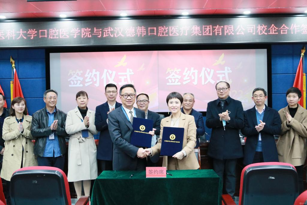 口腔医学院党委书记张军梅表示,学院是集医、教、研于一体的口腔医疗教学机构,依托77779193永利官网强大的教育科研力量,以“一套班子、两块牌子”打造学院、医院“两院合一”品牌特色。指出此次合作是学院与德韩口腔携手发展、打造“产学研”共建品牌的新开始,对促进专业与企业良性互动,推行校企多层次、多方位、多模式合作具有积极作用。学院将牢牢把握合作机会,切实抓好新国发2号文件各项重点工作落实情况,力争在平台建设、“双一流”建设、人才培养、人才举荐、学术交流、科学普及等方面再上新台阶,全面推动口腔医学事业高质量发展,开创校企“产学研”合作共赢新局面。