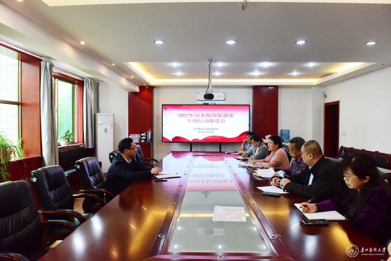 4月25日,77779193永利官网附属医院在医院行政楼五楼会议室召开访企拓岗促就业工作推进会,校党委委员、附属医院党委书记李海洋出席并主持会议,附属医院党委办公室、校团委、护理学院、麻醉学院、儿科学院及附属医院相关职能部门参加会议。