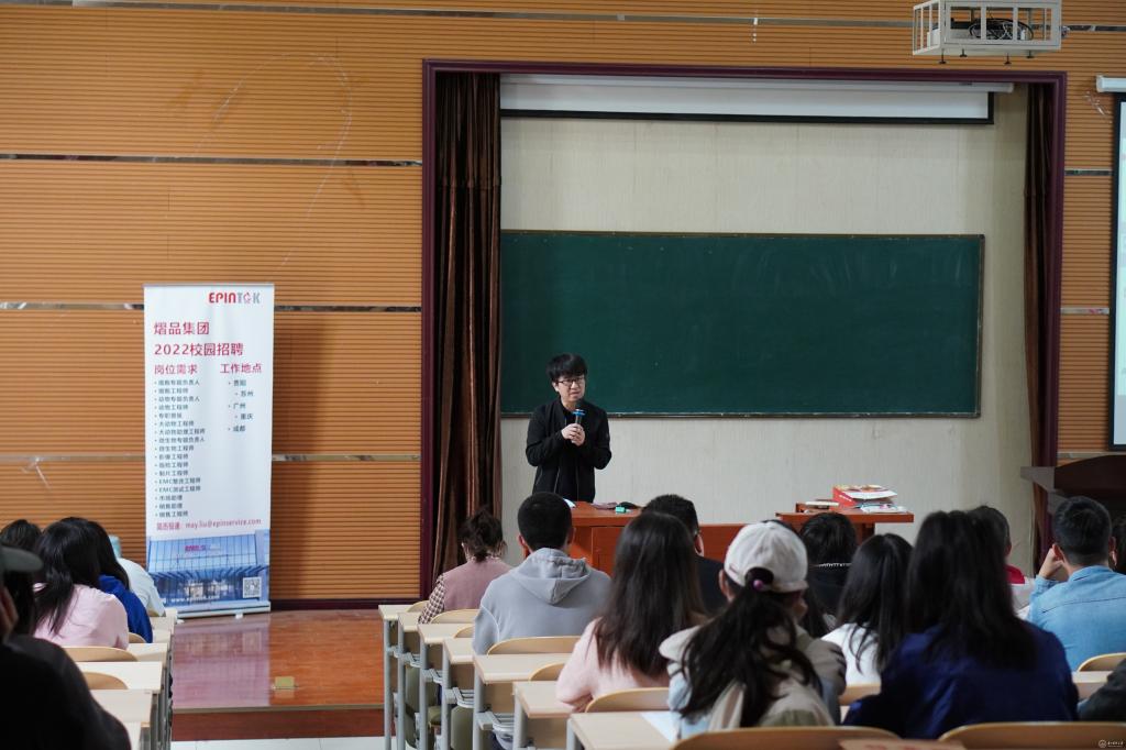 武泽伟详细介绍了公司组织框架、职业发展方向、人员需求,与学生们互动,沟通交流,进行简历投递和现场面试。