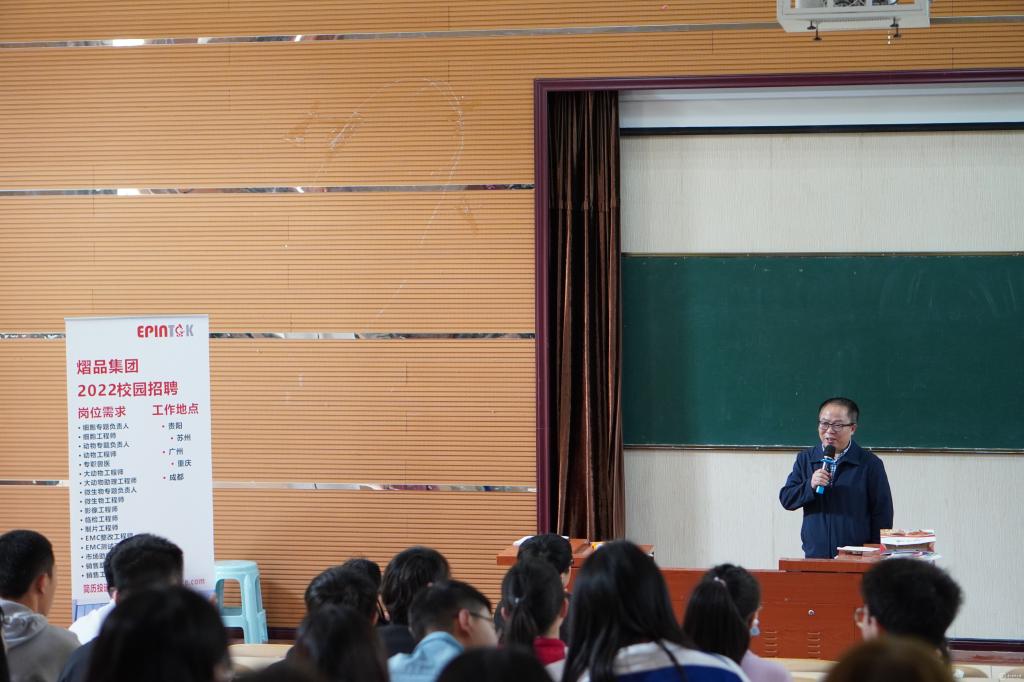 4月26日,熠品(贵阳)质量科技有限公司到生物与工程学院开展招聘工作,副校长曾柱出席招聘会。学院党政领导、贵阳熠品西南区域运营总监武泽伟、熠品集团研究院主任科学家陈红、生物性能实验室经理李跃、行政人事经理刘宇、学院实训中心、学生科、全体毕业生参加。
