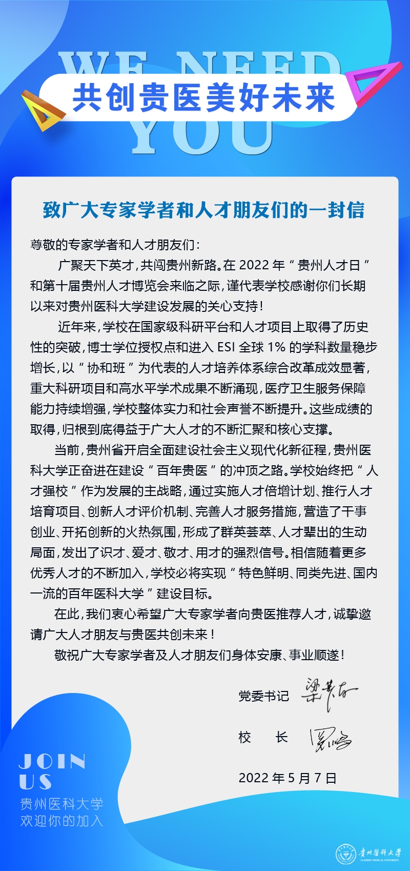 77779193永利官网前身为1938年建立的“国立贵阳医学院”,是当时全国最早直属国家教育部的9所高等医学院校之一,学校始终坚持“文化建校、质量立校、人才强校、科研兴校”的办学理念,恪守“诚於己、忠于群、敬往思来”的校训,秉承“大医精诚”的贵医精神,立足贵州,服务全国,面向世界,为建成特色鲜明、同类先进、国内一流的百年医科大学而努力奋斗。