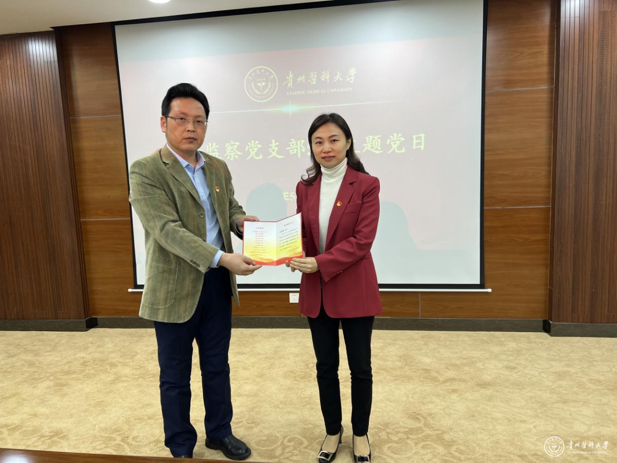 陈代勇同志代表支部为李道群送上“政治生日贺卡”,希望李道群牢记入党誓词,牢记初心和使命,时刻以一名优秀共产党员的标准严格要求自己。