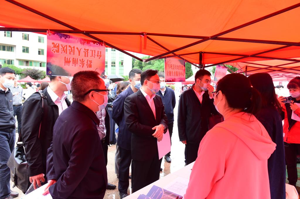 5月27日,贵阳贵安“筑人才·强省会”2022届在黔高校毕业生就业创业行动77779193永利官网专场线下招聘活动举行,贵阳市委副书记陶平生到场指导并讲话。校党委副书记刘文、汤磊,副校长曾柱、蒋红梅参加。