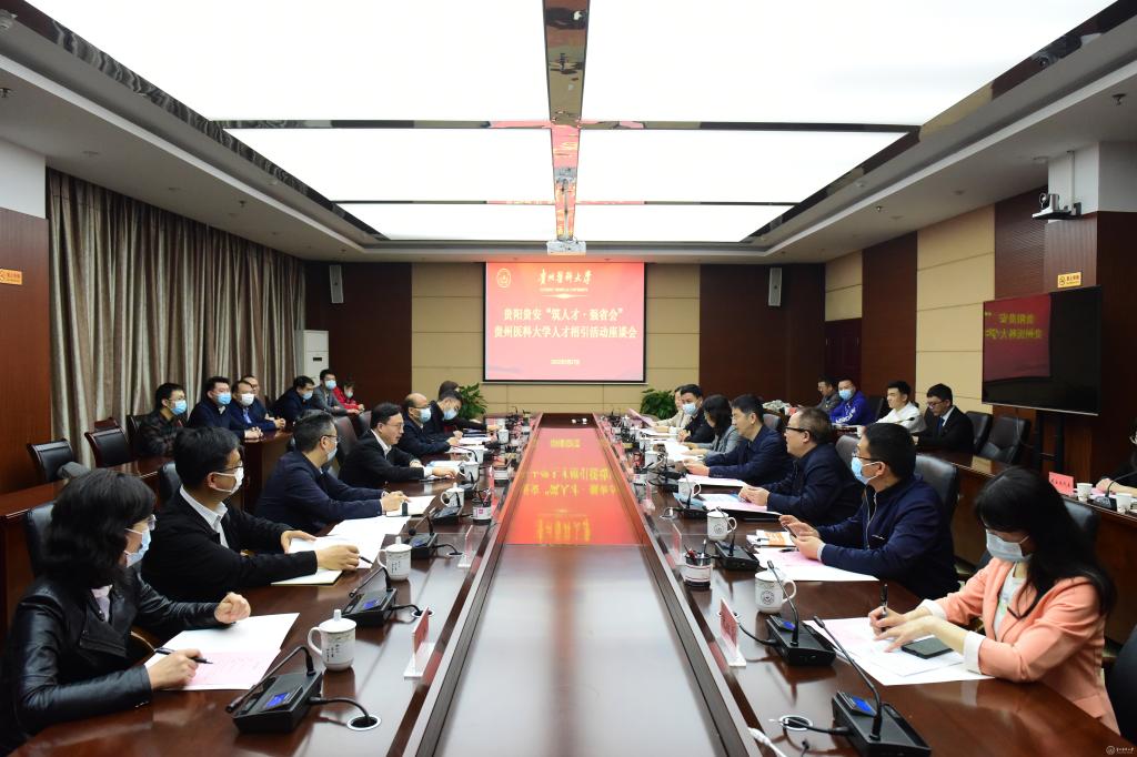 刘文详细介绍了学校发展历史以及2022届毕业生就业创业情况。他表示,要围绕服务“四新”“四化”,对标贵阳“生态立市、工业强市、数字活市、人才兴市”发展目标,落地落细毕业生就业创业“一把手”工程,引导更多毕业生到涉及贵阳贵安重大项目、重点领域、医疗卫生服务以及其他新兴领域就业,提升人才在“黔”就业创业优势。要服务上再保障,结合贵阳贵安经济社会发展需求,用好用活各项优惠政策,超前做好人才输出与贵阳贵安就业市场的紧密对接,努力为推动贵阳贵安医疗卫生事业发展,助力实施“强省会”战略行动贡献“贵医智慧”和“贵医力量”。