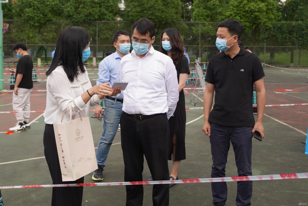 在核酸检测现场,罗鹏详细了解学校全员核酸检测的采集点设置、流程安排、服务保障、人员安排、应急措施等具体情况,实地察看检测点防控措施落实等情况,亲切慰问现场医护人员和工作人员。
