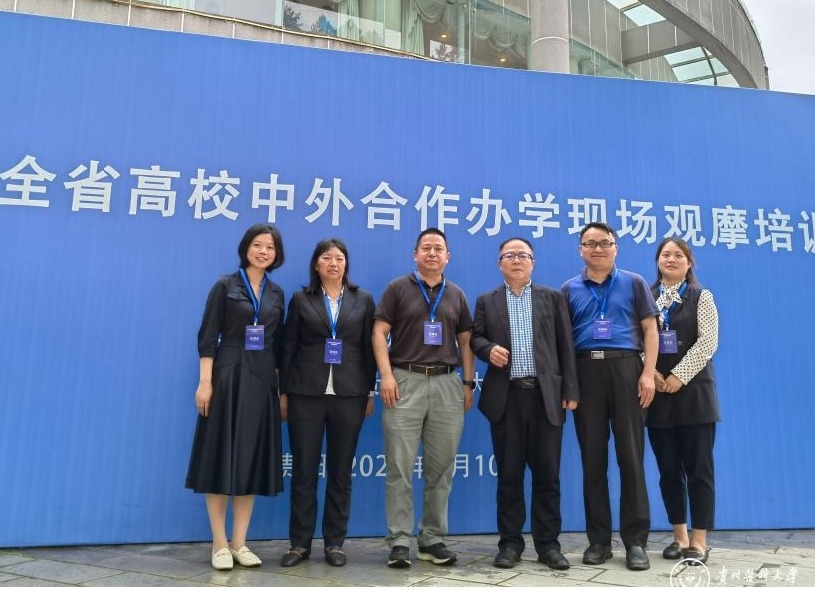 6月10日,全省高校中外合作办学现场观摩培训在贵州财经大学举行。培训由省教育厅国际处处长王睿主持。省教育厅党组成员、省教育工会主席王慧出席并讲话。副校长曾柱率国际交流合作处、药学院、生物与工程学院有关负责人参加。