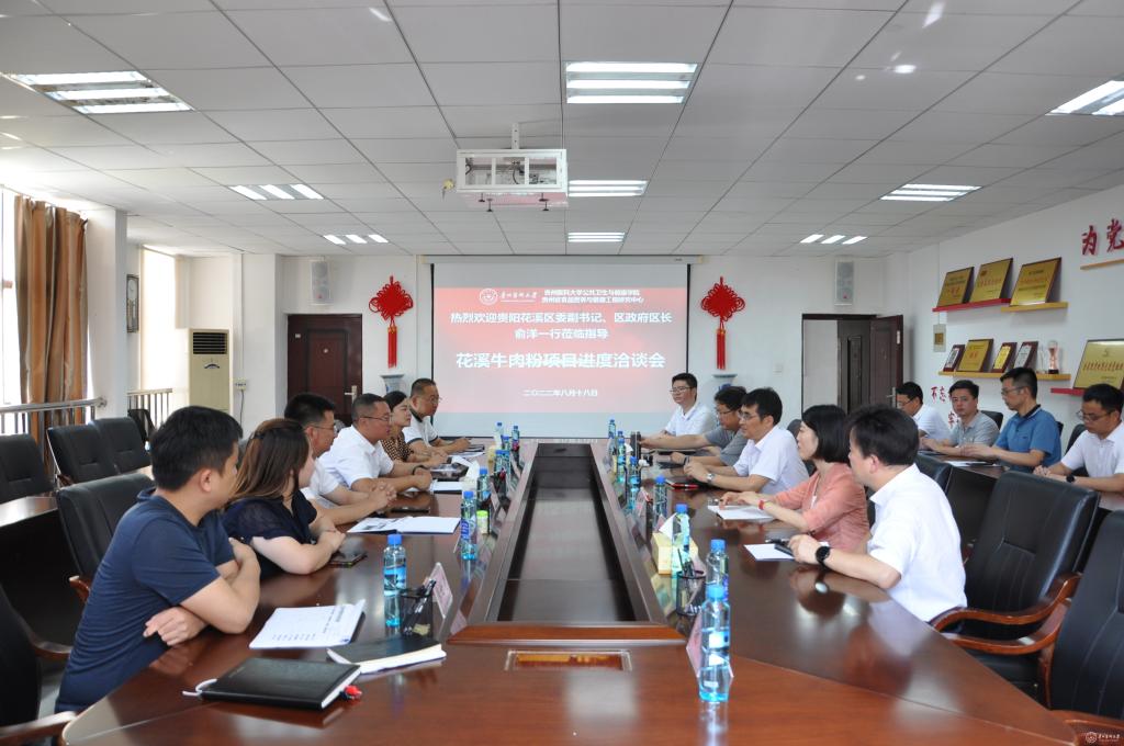 8月18日,花溪区区委副书记、区政府区长俞洋率区文旅局、区商务和投资促进局、区旅文公司等相关部门负责人到永利官网公共卫生与健康学院参观考察。校党委副书记、校长罗鹏出席座谈会,科技创新与产业发展处负责人、公共卫生与健康学院党政班子及贵州省食品营养与健康工程研究中心团队主要成员参加。