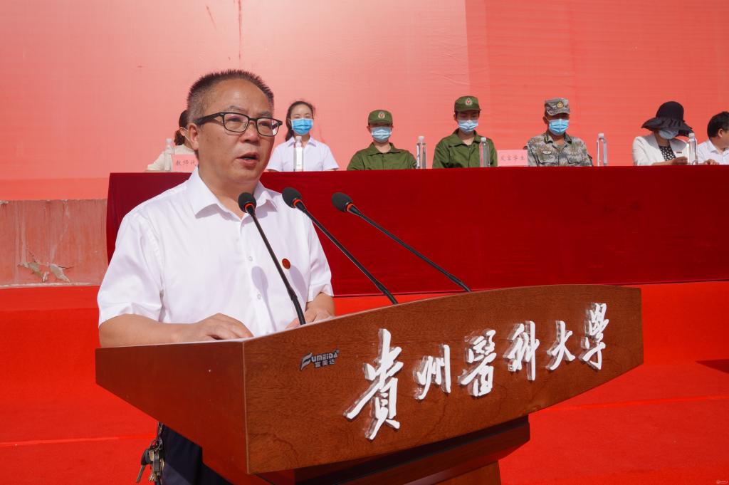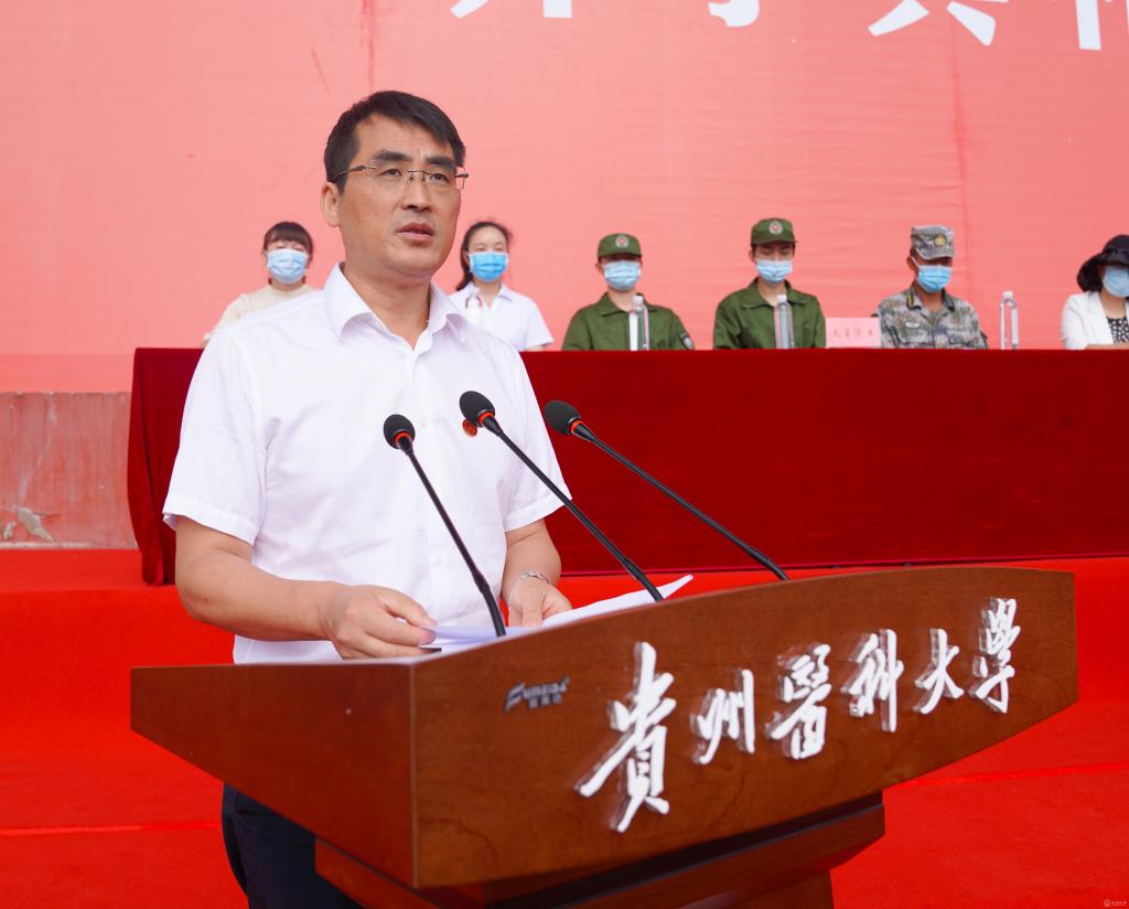 罗鹏代表学校对新同学的到来表示热烈欢迎,向辛勤付出的学生家长及老师表示衷心的感谢。他说,学校有着悠久的办学历史和优秀的育人传统,创建于1938年,其前身国立贵阳医学院,有着“小协和”之美誉,同学们的到来为百年贵医注入了新的青春活力。在贵医这个大舞台上,可以充分展示自己的个性、才华与智慧,并最终成长为报效祖国、引领社会、造福人类的栋梁之才。他对新生们提出希望:一是保持铸魂正向的定力;二是保持立德修身的耐力;三是保有厚积薄发的实力;四是保存行稳致远的体力。希望同学们保持定力,以青春之我、奋斗之我,融入国家强盛、民族复兴、时代进步、人民幸福的时代洪流,不负韶华,不负时代,不负人民。