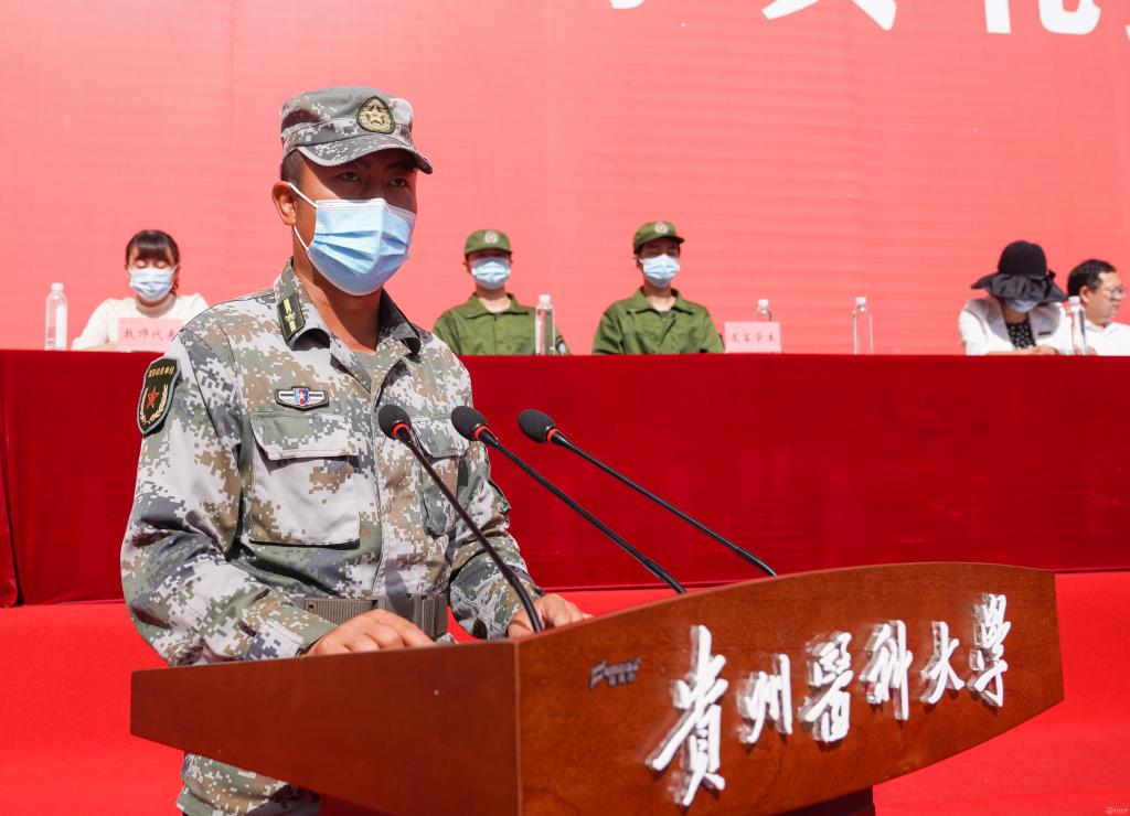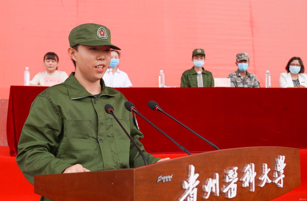 执训教官代表鲍志辉发言,表示一定圆满完成此次军训任务。