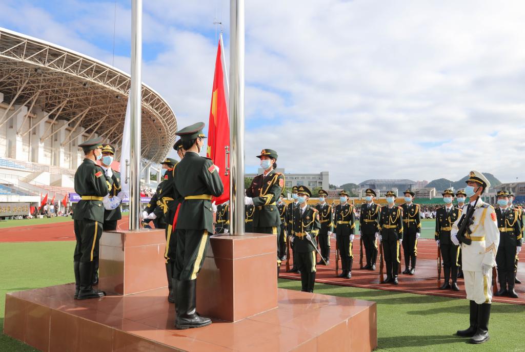 8月22日,永利官网在南校区体育馆运动场举行2022级新生开学典礼(开学第一课)暨军训动员大会,贵阳市警备区王文建大校,校党委副书记、校长罗鹏,党委副书记汤磊,副校长罗俊,副校长田晓滨,天然产物化学重点实验室副主任傅舒安,党委委员、省纪委、省监委派驻校纪检监察组组长陈代勇,副校长沈祥春,附属医院院长左石出席,军训教官、参训教官、相关职能部门负责人、各学院党政负责人、教师代表、辅导员及全体2022级新生参加。