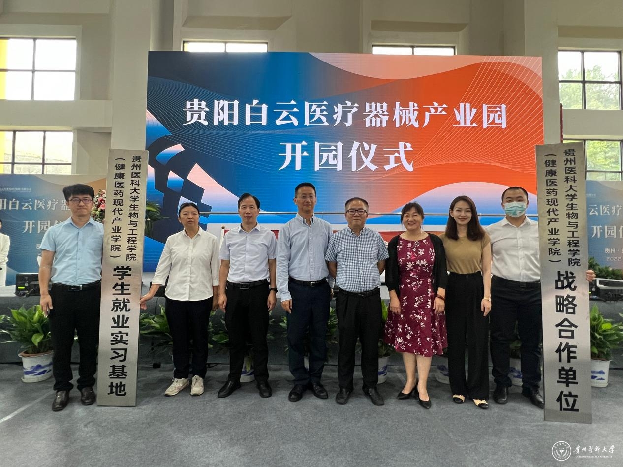 8月26日,贵阳白云医疗器械产业园开园仪式在贵阳市白云区麦架镇贵阳白云医疗器械产业园举行,副校长曾柱率生物与工程学院(健康医药现代产业学院)有关负责人参加。出席仪式的还有贵州省卫健委二级巡视员解德沛、贵州省药监局副局长李琎、白云区委书记步岚、白云区区长唐樾、贵州大学公共大数据国家重点实验室科技创新办主任吴鹏、贵州省医疗器械行业协会会长刘树等。省市相关职能部门负责人、高校及企业代表百余人参加仪式。