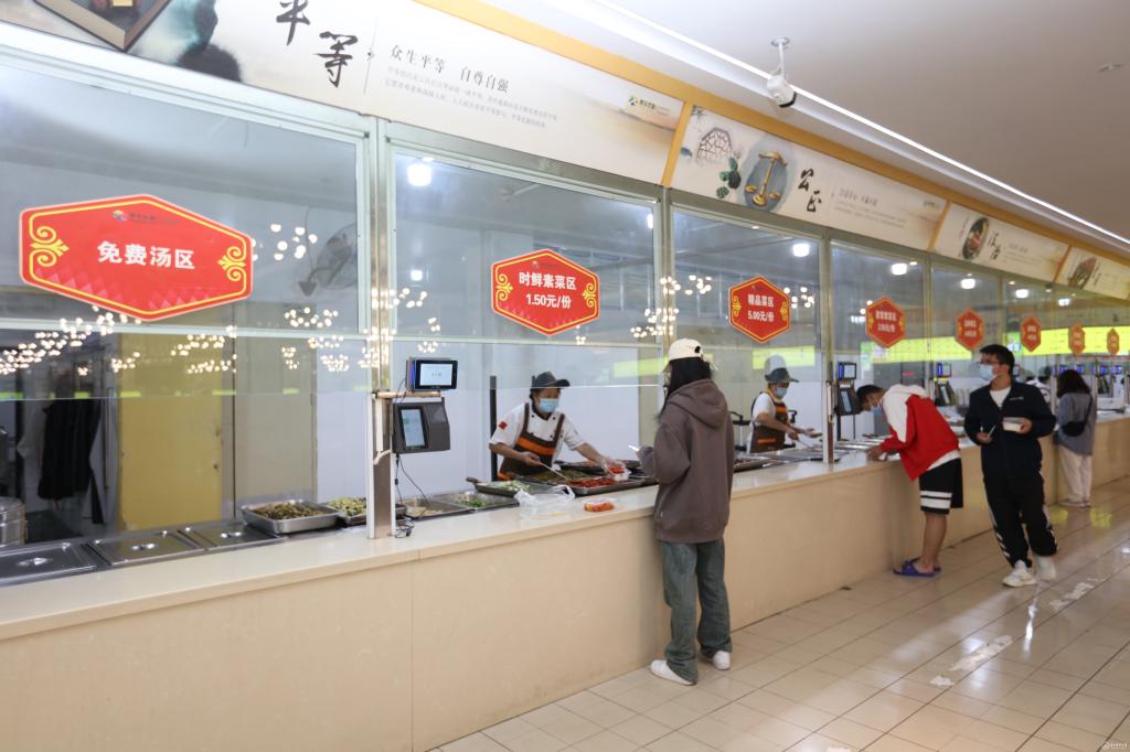 来到一食堂,三个楼层所有的供应窗口都开着,同学们喜欢吃的各种荤素搭配的快餐、烤肉饭、火锅米线、米粉面条、水饺馄饨、包子馒头、各种饼类和粥类等食物一应俱全,且种类丰富,让人眼花缭乱;生活超市也都开着,商品齐全,供应充足。“这几天除了不能随意外出和寄取快递之外,我没有感觉到明显的变化,食堂的饭菜和疫情前感觉也没有变化,种类还是一样的丰富,味道也还是熟悉的味道。超市的东西也很齐全,日常所用都能买得到。只是现在特殊时期,我们基本都是打好饭菜回到寝室吃。学校能在疫情期间让食堂‘保持原样’,感觉很安心,给学校点赞!”正在食堂买午饭的2021级临床医学专业严俊熙同学说到。